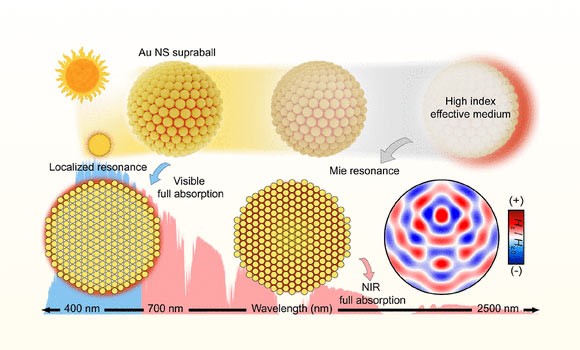 Команда Корейського університету під керівництвом Сунву Лі вирішила цю проблему, створивши «супракулі» — кластери наночастинок золота, які спонтанно збираються в крихітні сфери. Ретельно регулюючи діаметр цих супрасфер, вони максимізували поглинання в більш широкому діапазоні довжин хвиль.